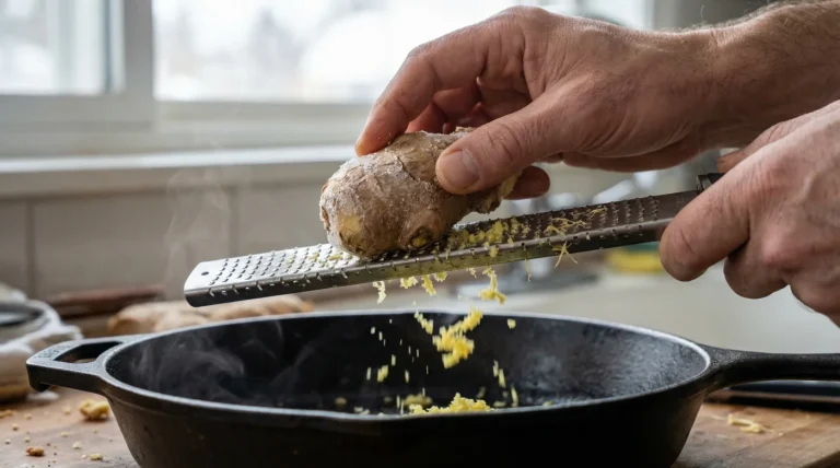 Reiben Sie gefrorenen Ingwer direkt in die Pfanne für intensives Aroma