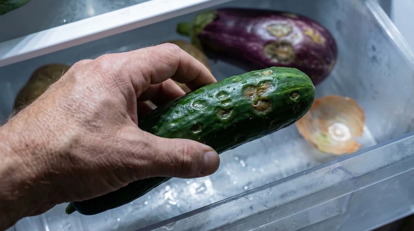 „Viele Verbraucher wundern sich, warum ihre Gurke nach zwei Tagen im Kühlschrank gummiartig wird und fault, anstatt knackig zu bleiben. Die Kälte unterbricht den natürlichen Reifeprozess und zerstört die Zellwände – das Gemüse ‘erfriert’ innerlich, lange bevor es gefriert.“