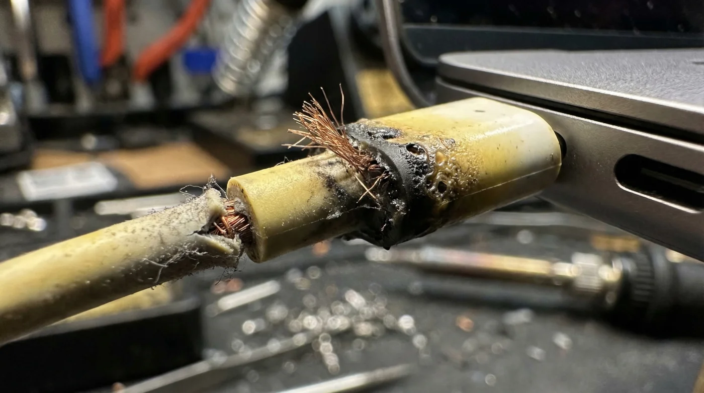 Wenn ein modernes MacBook Neo versucht, bis zu 140 Watt oder mehr an Leistung zu ziehen, und das alte Netzteil diese Anforderung nicht korrekt interpretieren kann, entstehen gefährliche Spannungsspitzen. Diese „Voltage Spikes“ können die mikroskopisch kleinen Schutzschaltungen im Inneren des Laptops überwinden. Das Ergebnis ist oft kein langsamer Tod, sondern ein sofortiger Kurzschluss.